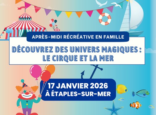 À propos Retour à la liste Des ateliers pour toute la famille ! Ateliers cirque et mer pour toute la familleVous cherchez une activité gratuite en famille à Étaples-sur-Mer ?En partenariat avec la Ville d'Étaples-sur-Mer, le Centre Social Caf d'Étaples-sur-Mer organise une après-midi récréative gratuite le samedi 17 janvier 2026, de 15h à 18h, à la Salle de la Corderie d'Étaples-sur-Mer. Un événement unique pour petits et grands, mêlant animations ludiques et ateliers créatifs sur les thèmes du cirque et de la mer. Au programme :Des spectacles pour les petits joués par la Compagnie Lassalle15h15 : Univers du cirque17h15 : Univers marinDes animations ludiques en continu : Disques tournants à colorier et décorer,Homme canon,Marionnette « cône »,Personnage à bascule,Jeux de lancers,Parcours de motricité,Pêche aux canards,Parcours sensoriel,Atelier maquillage/tatouages temporaires...Ces animations gratuites sont organisées par des professionnels du territoire et garantissent une expérience enrichissante pour les grands et les petits.Des ateliers créatifs sur inscriptionDes arbres à nos doigts (de 15h à 18h)3 ans et + En continu En libre accès et gratuitJeu de construction avec des planchettes en bois.L'édredon Surprise (16h)De 3 mois à 4 ans Durée : 15 à 20 minutes. ️ 8 enfants max. par session - Sur inscription et gratuitDécouverte sensorielle avec des comptines.La boîte à musique de BoBi (16h30)3 ans et + Durée : 20 minutes. 6 enfants max. par session - Sur inscription et gratuitDécouverte musicale à partir d'objets récupérés.Les places étant limitées, nous vous invitons à vous inscrire en amont auprès de la crèche "À l'abordage" d'Etaples-sur-Mer au 03 61 22 10 46.Les enfants pourront repartir avec leurs créations manuelles. Informations supplémentaires : Par la Ville d'Etaples-sur-mer et le Centre social CAF.Renseignements et inscriptions : Crèche "À l'abordage" d'Etaples-sur-Mer au 03 61 22 10 46.
