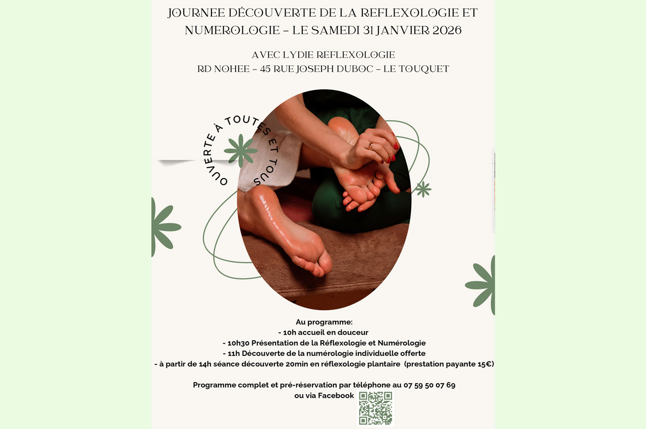 À propos Retour à la liste Journée découverte de la Réflexologie et Numérologie Le samedi 31 janvierAvec Lydie RéflexologieOuverte à toutes et tous