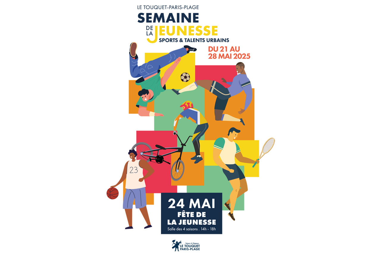 Fête de la jeunesse du Samedi 24 mai : (gratuit et ouvert à tous) thème : Sports et talents urbains de 14h à 18h à la salle des 4 saisons avec démonstrations et initiations des différentes activités proposées aux jeunes sur la commune (Associations sportives + ateliers du service jeunesse et animation), des animations et stands pour tous dans une ambiance festive et conviviale (restauration sur place par le Café Heureux Mobile, popcorn, barbe à papa pour financer le voyage des jeunes du CMJ).Présence de la web radio de l’Association Baie de Canche pour un reportage réalisé par les jeunes du CMJ. Les différentes activités proposées sur cet après-midi :- Artiste grapheur : réalisation en continu d’une fresque de 10 mètres représentant le Touquet.Ateliers proposés aux jeunes et 3 temps forts (15h, 16h et 17h) avec la réalisation d’œuvres éphémère autour du Caddy.- TAC Cyclo : animation autour de parcours avec obstacles- Touquet Tennis Club : initiations pour les jeunes- Club de golf : initiations pour les jeunes- Artiste au djembé : concert de 45 min et ateliers d’initiation pour les jeunes- Artiste de cirque : ateliers d’initiation pour les jeunes- Freestyle Basket : démonstrations et initiations pour les jeunes- Freestyle BMX : démonstrations et initiations pour les jeunes- Breakdance : démonstrations et initiations pour les jeunes- Stand d’informations sur les activités proposées par le service jeunesse et animation- Structures gonflables + divers jeux gonflables- tir laser, tir à l’arc, Disc golf, …- Stand sculptures sur ballons- Café Heureux Mobile- Stand barbe à papa et pop-corn tenu par les jeunes du CMJ