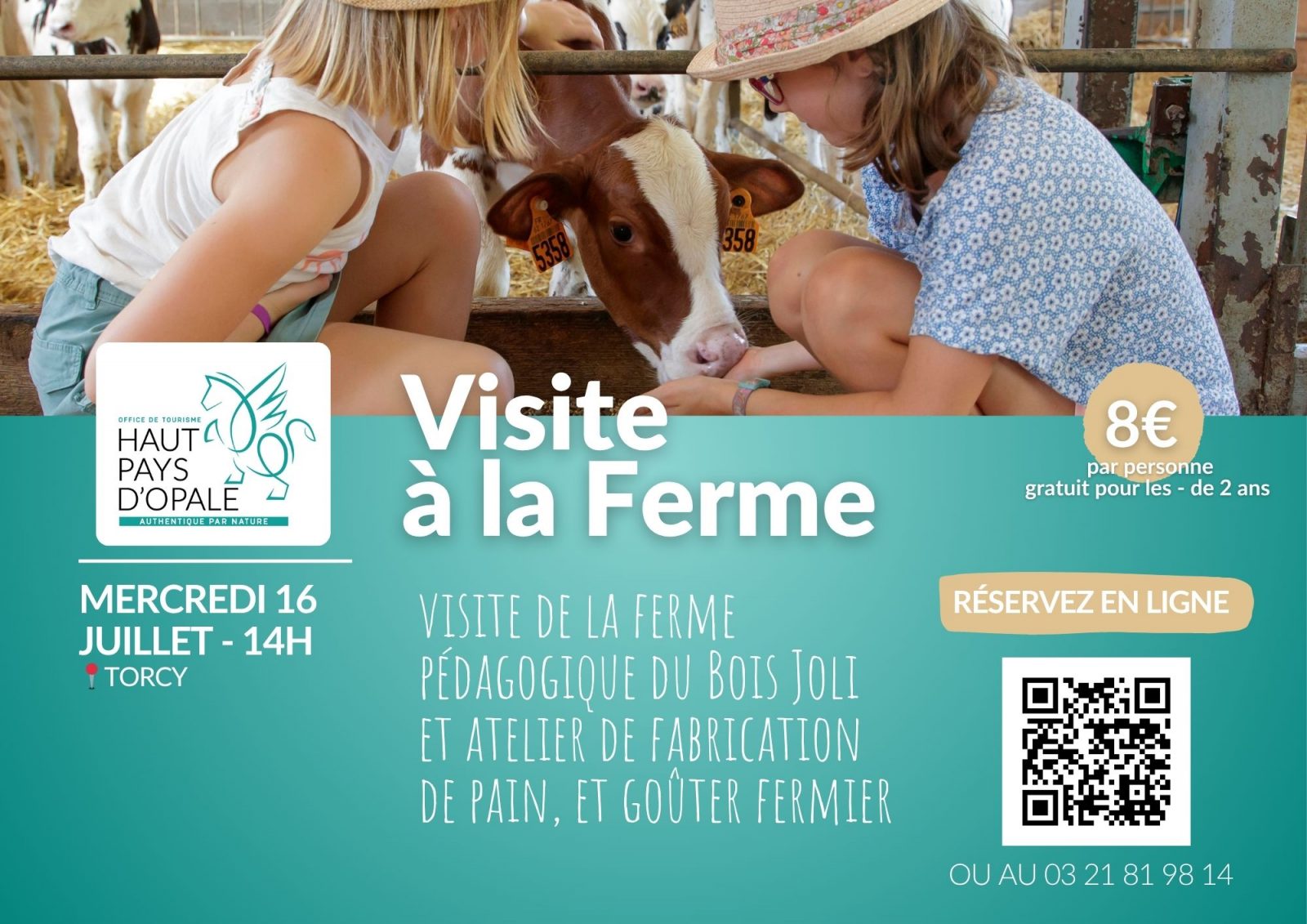 À propos Tarifs Retour à la liste Rendez-vous le mercredi 16 juillet pour la visite de la ferme pédagogique du Bois JoliDépart 14h à la ferme - Atelier de fabrication de pain, et goûter fermier Tarifs Tarif Min. Max. Enfant 0€ 8€