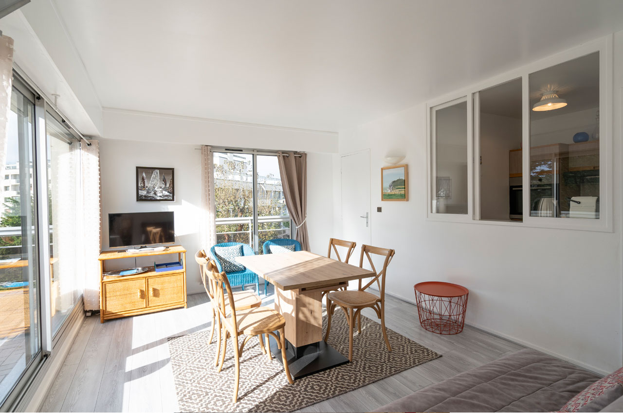 Partenaire de l'Office de Tourisme 11 À propos Capacité Tarifs Prestations À proximité Retour à la liste Appartement idéalement situé entre le casino de la forêt , les tennis , l‘hippodrome , le stade, l’école Hôtelière et le centre ville .Il est dans une résidence calme , de haut standing et sécurisé , donnant sur un jardin et en retrait de l’avenue de Hippodrome .Il est composé d’un séjour avec canapé lit de 2 personnes d’une chambre avec un lit de 2 personnes d’une chambre avec 2 lits superposés d’une personne.Equipé en WIFILinge en option possibilité de location au tarif de 50 € Capacité 6 personne(s) Tarifs Tarif Min. Max. Tarif - Week-end 150€ 400€ Tarif - Semaine 250€ 600€ Tarif - Location de linge 0€ 50€ Tarif : de 150€ à 400 € Tarif : de 250€ à 600 € Tarif : jusqu'à 50 € Moyens de paiement Espèce Prestations Fer à repasser Réfrigérateur Table à repasser Terrasse privative/Balcon WIFI Coin salon Cuisine indépendante Etage Salle de bain privée