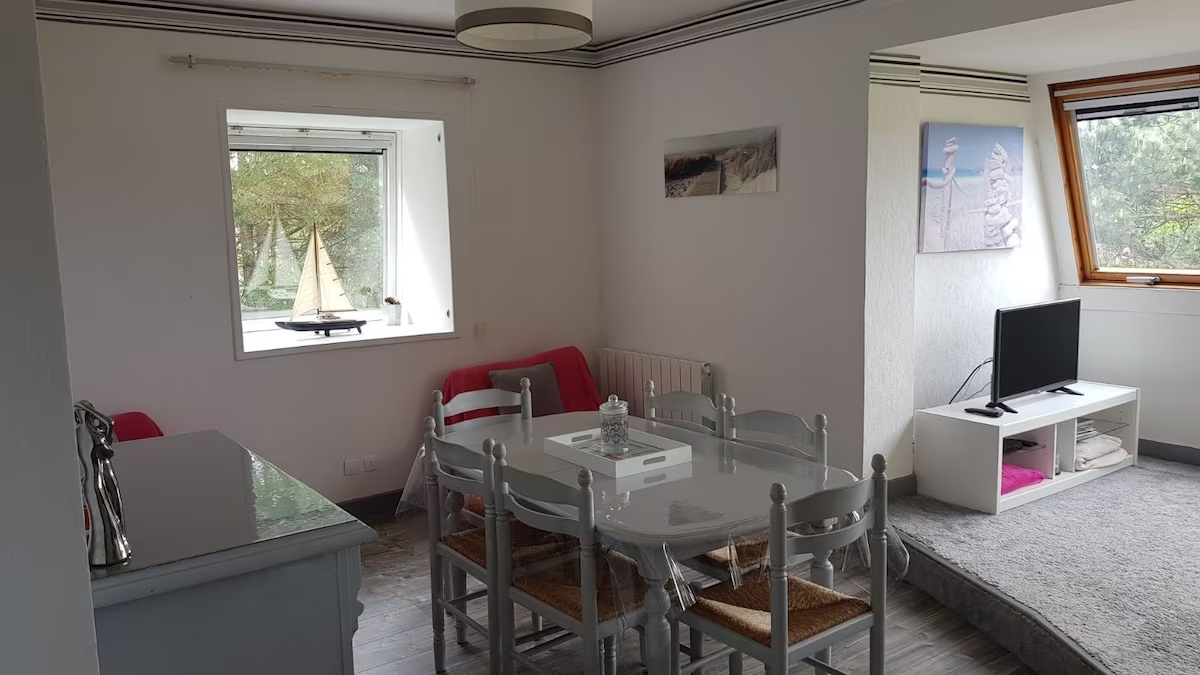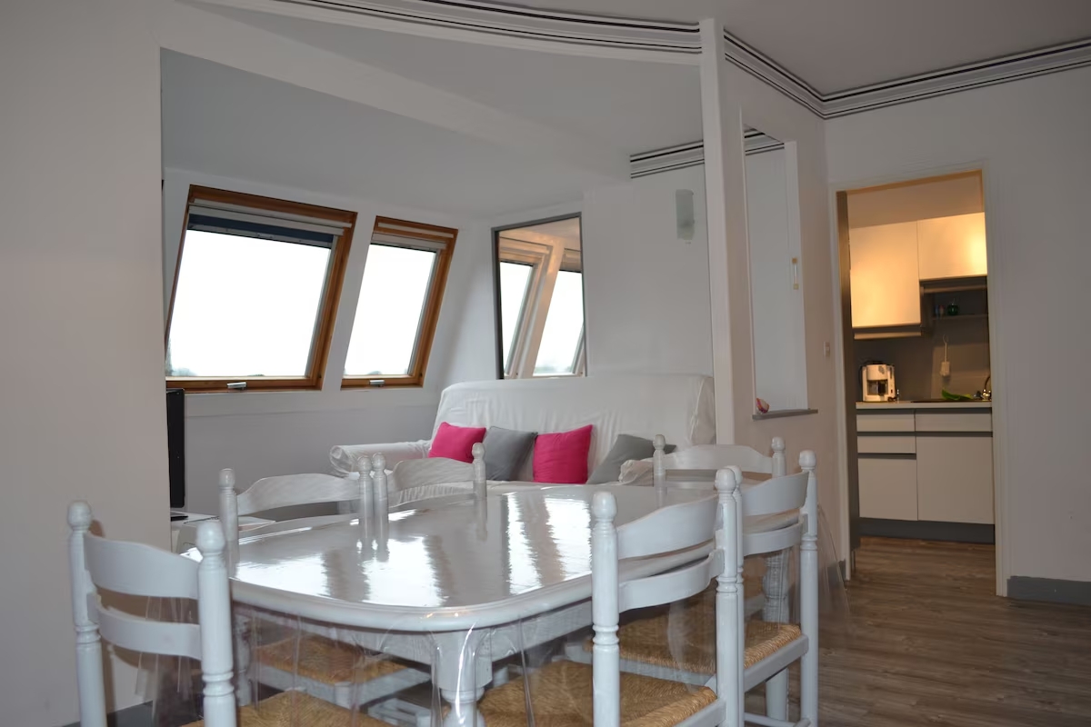 9 À propos À proximité Retour à la liste Appartement cosy et lumineux de 51m2 plein sud situé à 5km du Touquet à Stella-Plage, à 3min en voiture de la plage, 4/6 personnes, avec une grande chambre, salle de bain, salle à manger, salon, cuisine équipée avec un espace pour prendre ses petits-déjeuners, cellier, cave, le tout dans une résidence verdoyante et sécurisée avec portail électrique et place de parking.Le ménage en fin de séjour est inclus dans le tarif.ATTENTION: pour la période de mi-Octobre à mi-Mars, l'électricité n'est pas comprise dans le tarif. Nous faisons un relevé de compteur lors de votre arrivée et de votre départ. Nous payez que ce que vous consommez. Merci de votre compréhension.